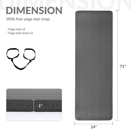 Reptiva One-Inch Thickened High-Density Yoga Mat with Straps